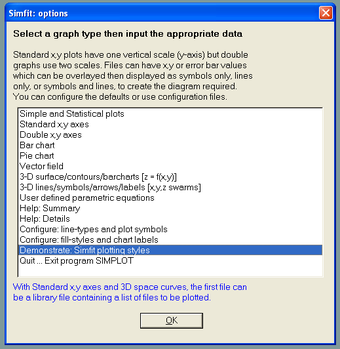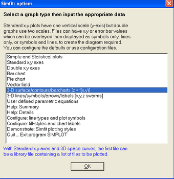 Simfit es un completo paquete matemático con más de cuarenta módulos que van desde la estadística descriptiva y multivariada hasta el cálculo numérico, pasando por funciones de ajuste de curvas y una cantidad notable de gráficos en dos y tres dimensiones.